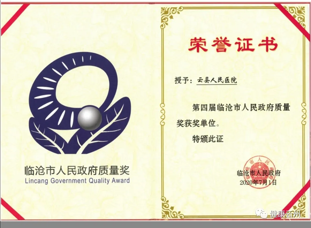 云县人民医院荣获“临沧市人民政府质量奖”
