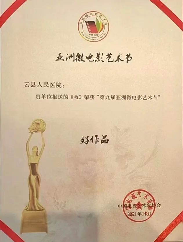 云县人民医院医共体改革题材微电影《救》荣获第九届亚洲微电影艺术节“好作品”奖